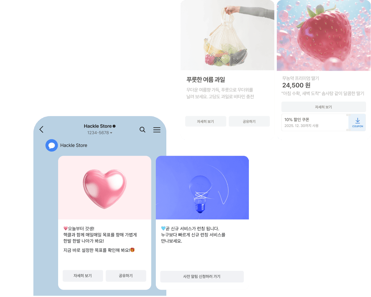 카카오 비즈메시지에 핵클의 다양한 기능을 더해 마케팅 효율을 극대화하세요.